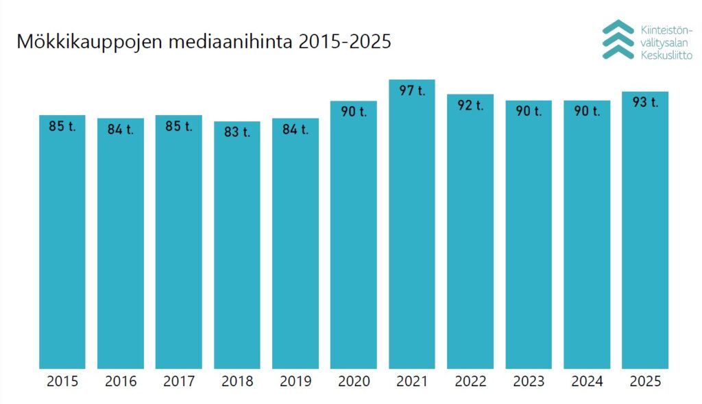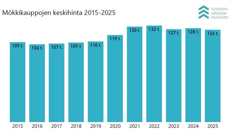 Hintataso loma-asuntojen kaupoissa on kuluneen vuoden aikana edelleen korkeammalla koronavuosia edeltävään aikaan nähden. Keskimääräinen hinta on 126 000 euroa ja mediaanihinta 93 000 euroa.