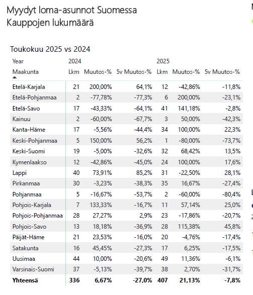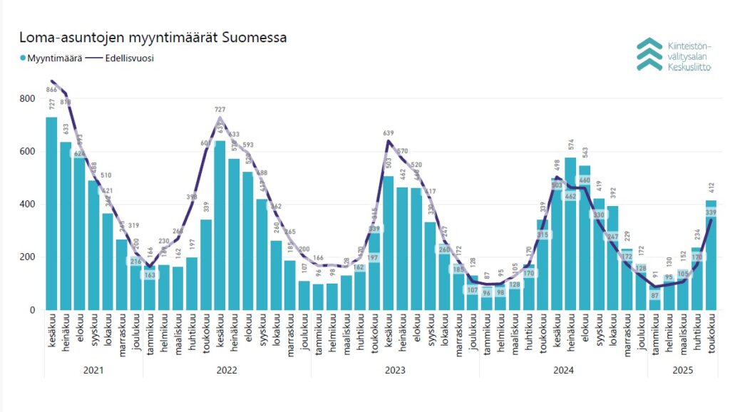 ”Näyttää siltä, että vuodesta 2025 on tulossa paras loma-asuntokaupan vuosi sitten koronapandemian buustaaman vuoden 2021, jolloin mökkeily oli monilta osin ainoa varteenotettava vaihtoehto lomailuun viruksesta johtuvien rajoitusten vuoksi.”